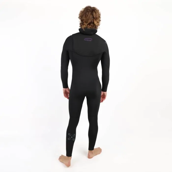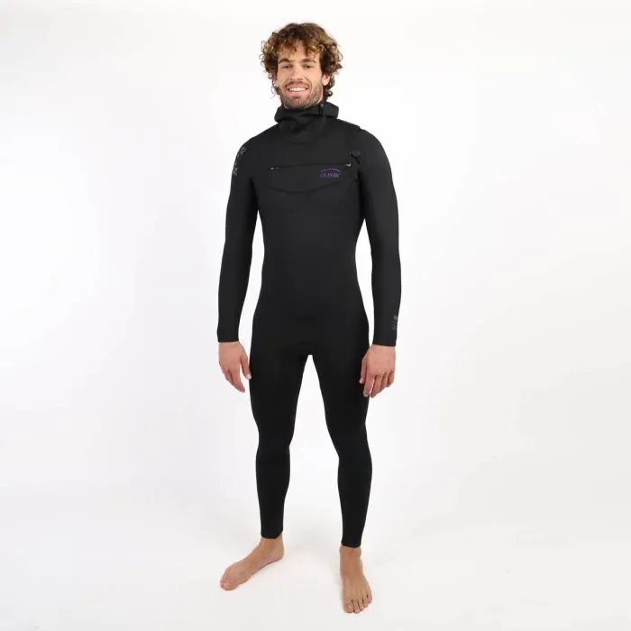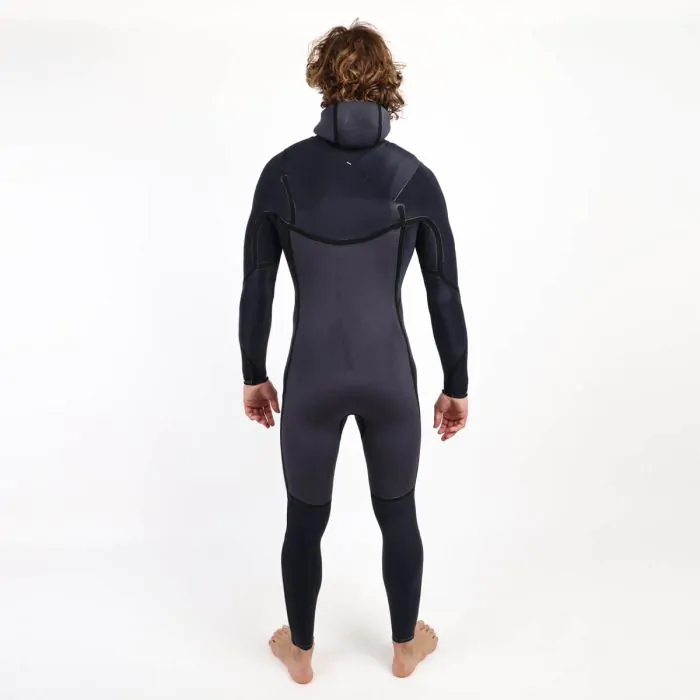 5mm chest and thighs, 4mm arms and legs wetsuit, with an integrated hood, for surfing in very cold water, thanks to thermal lining at the chest, legs and hood.