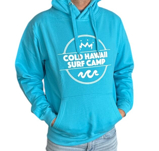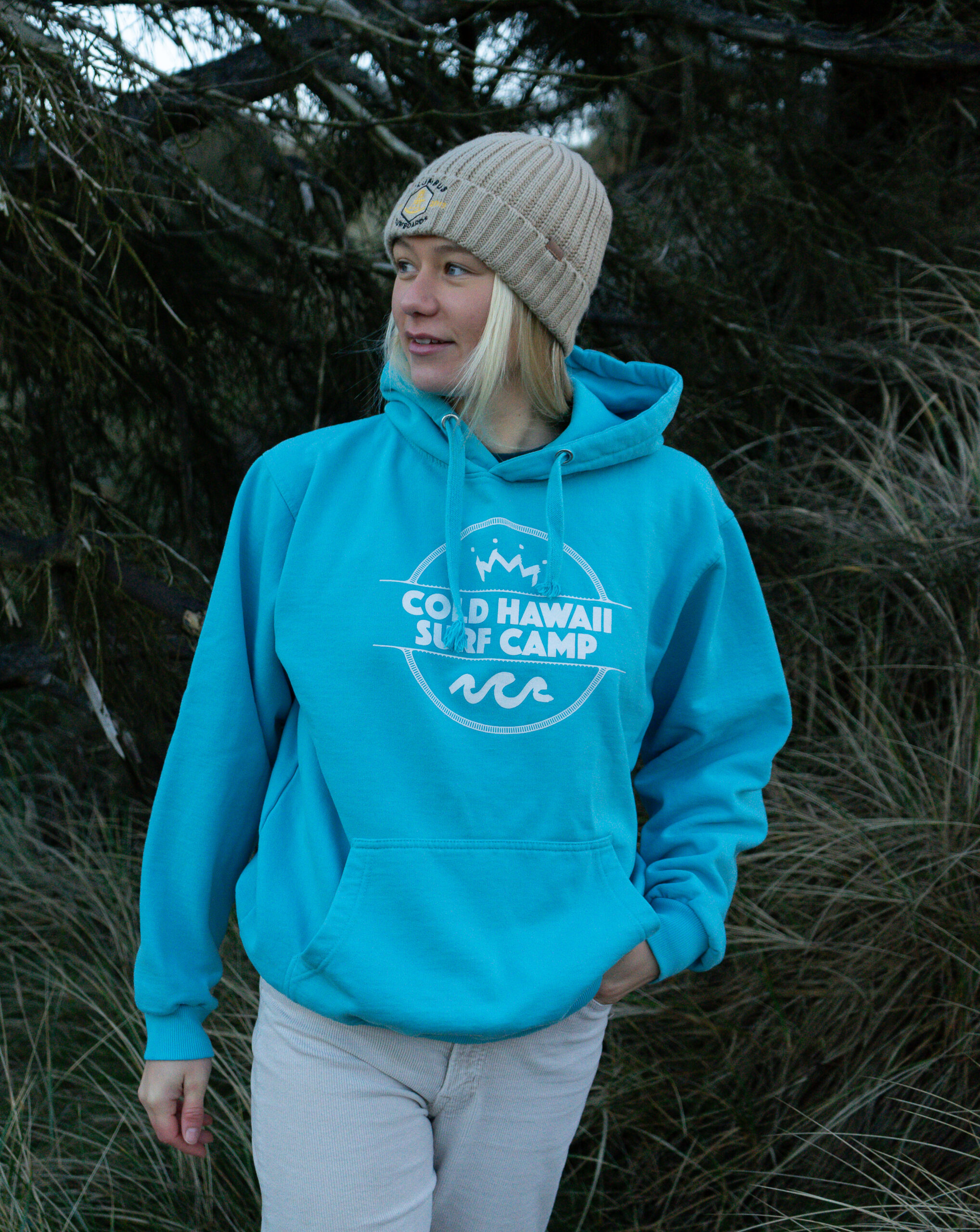 Cold Hawaii Surf Camp light turquoise hooded sweat