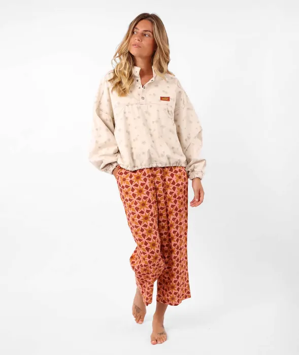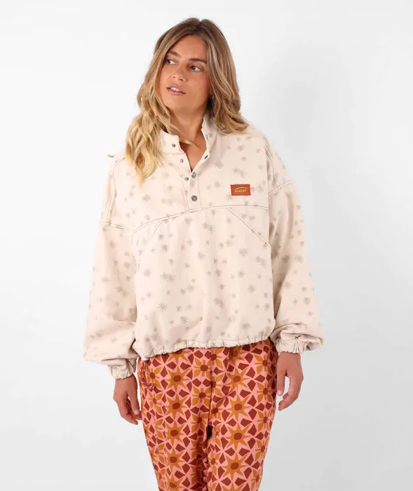 - Long-sleeves mock neck woven sweatshirt