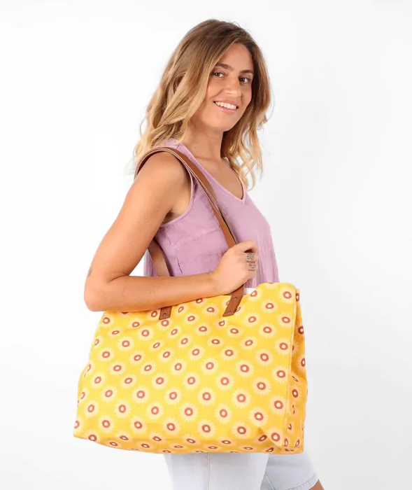 - Large cotton canvas bag with allover print