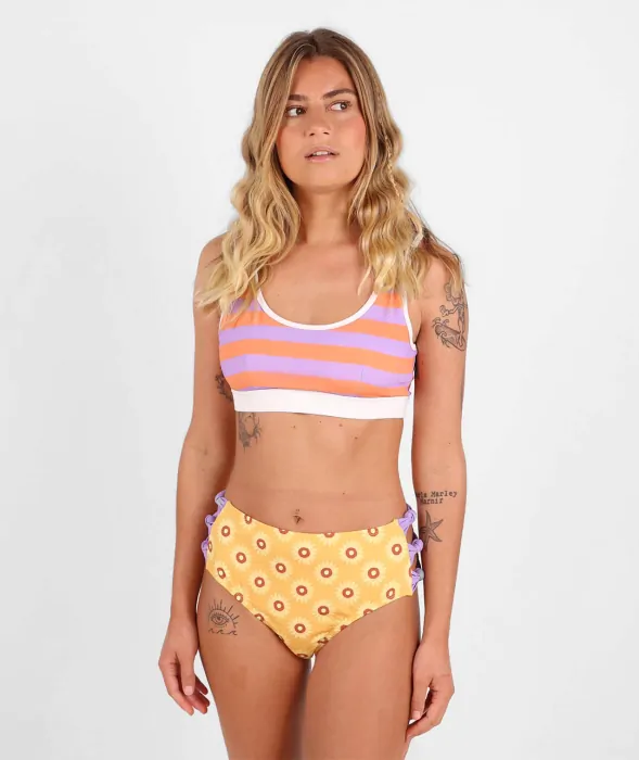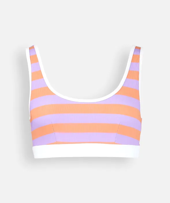 Sporty and stylish, this striped surf bra combines support and a dynamic look.