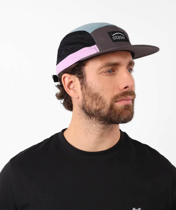 - Colorblock 5 panel cap in polyamide and mesh