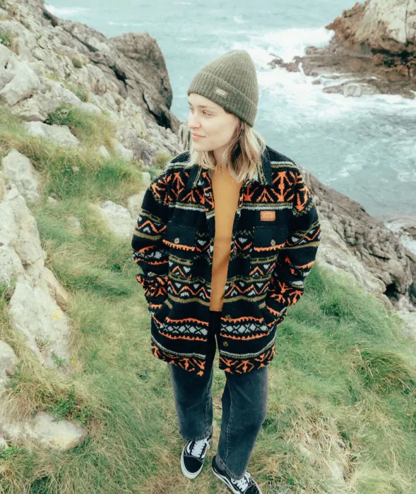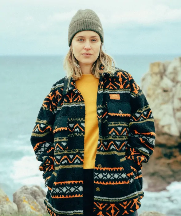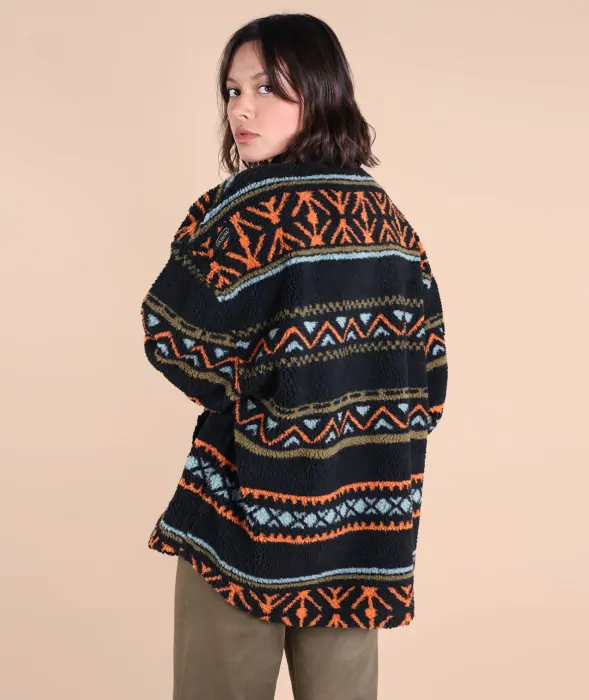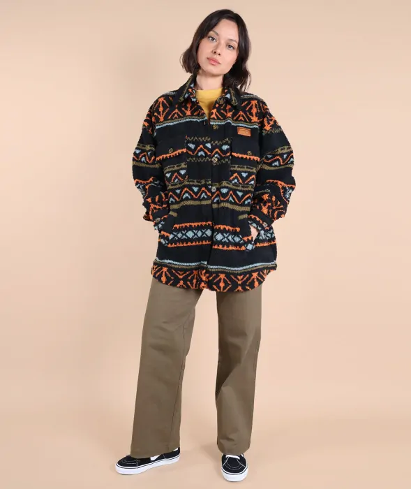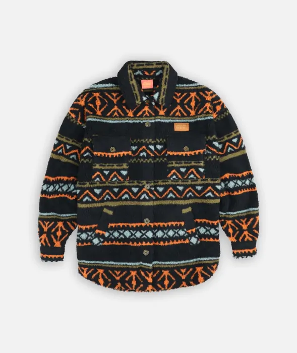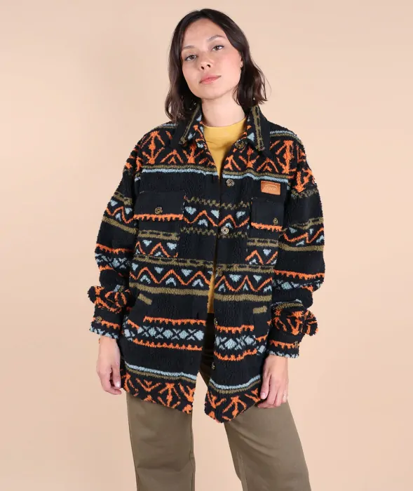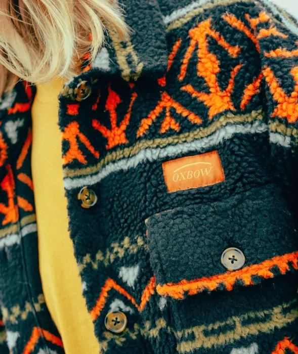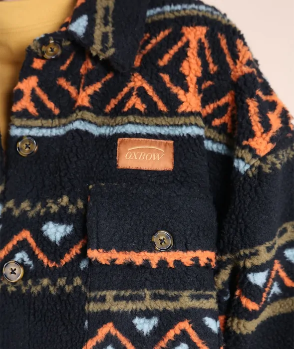 Warm and original jacquard sherpa overshirt with four pockets and woven chest label.