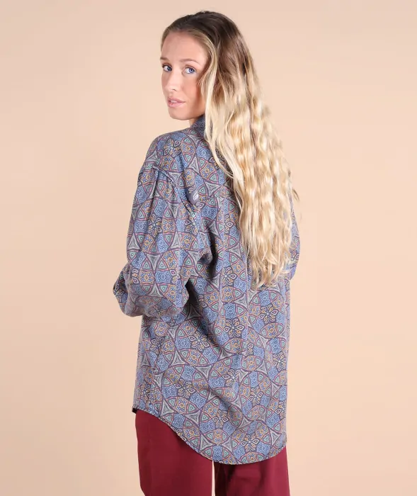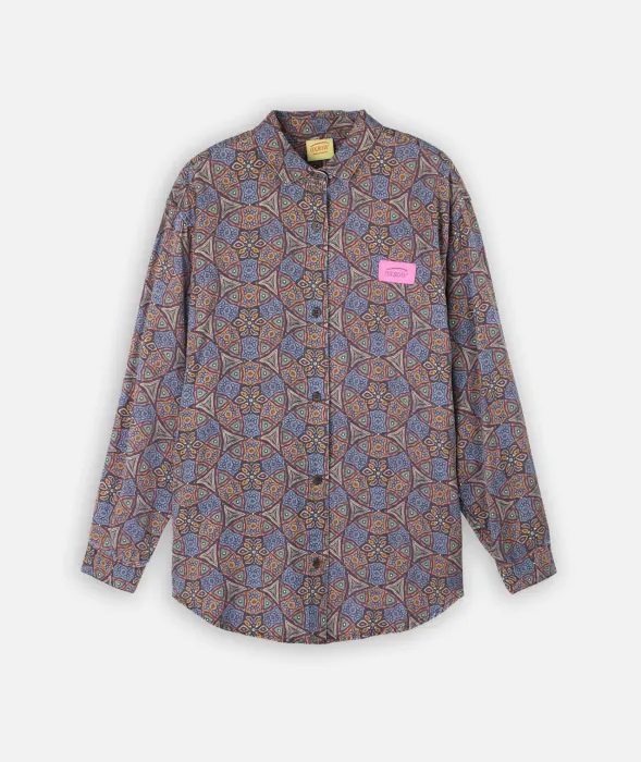 Flowing oversized viscose shirt with all-over print, silky Cupro-like effect.