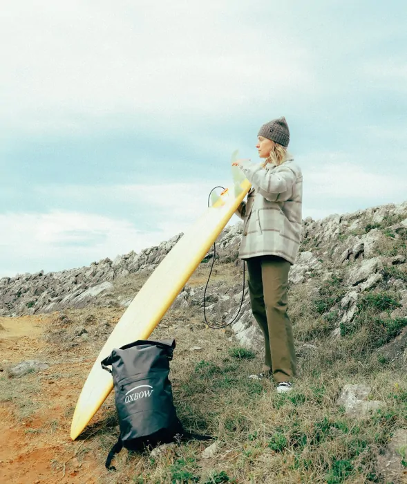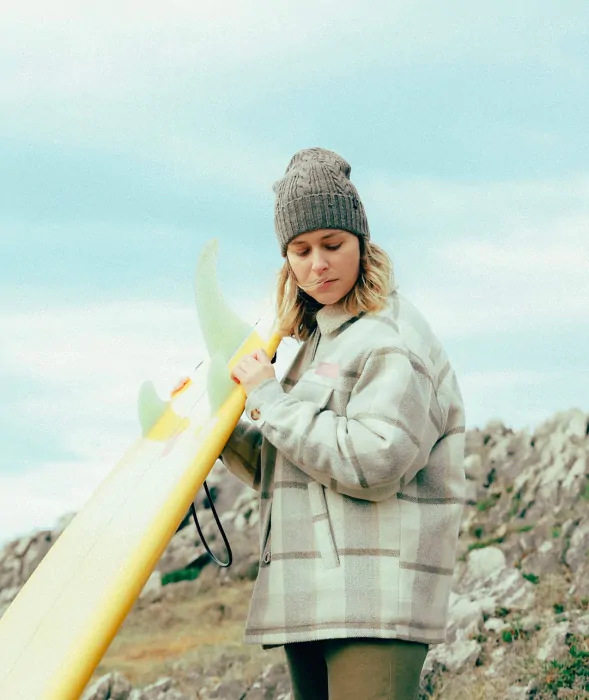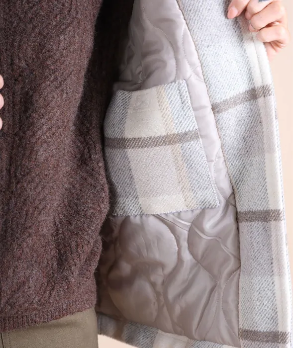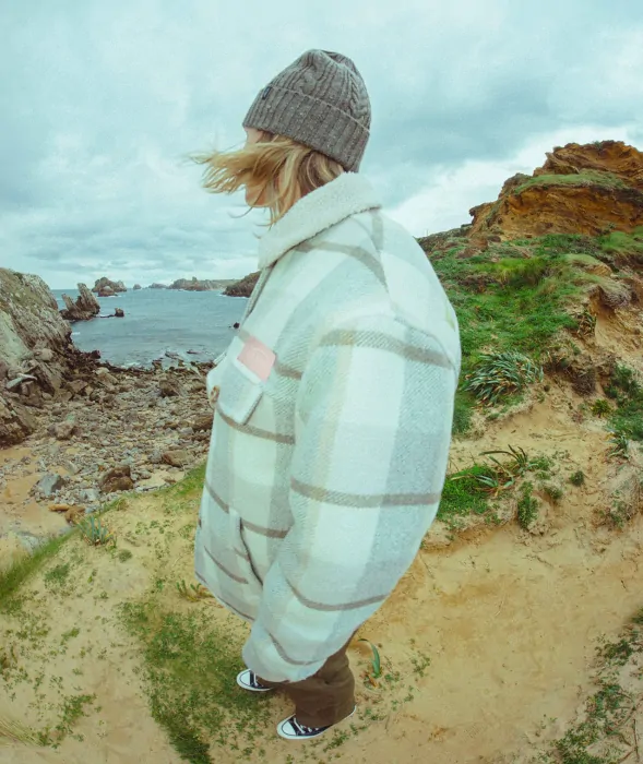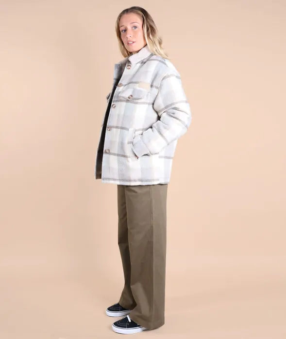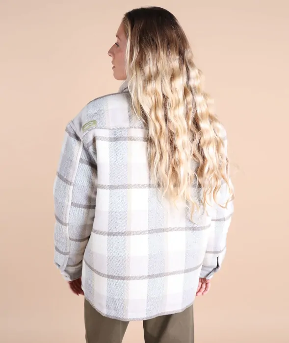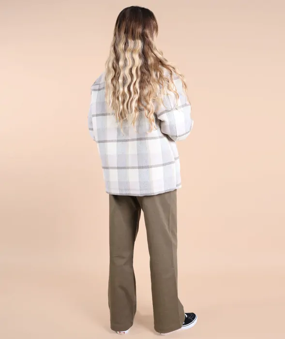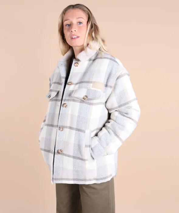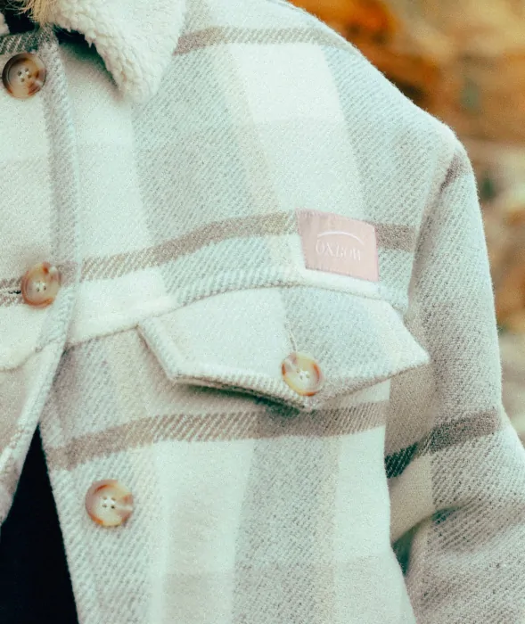 Flannel overshirt with velcro-closure side pockets, inner heart pocket, sherpa lining, and quilting for extra comfort.