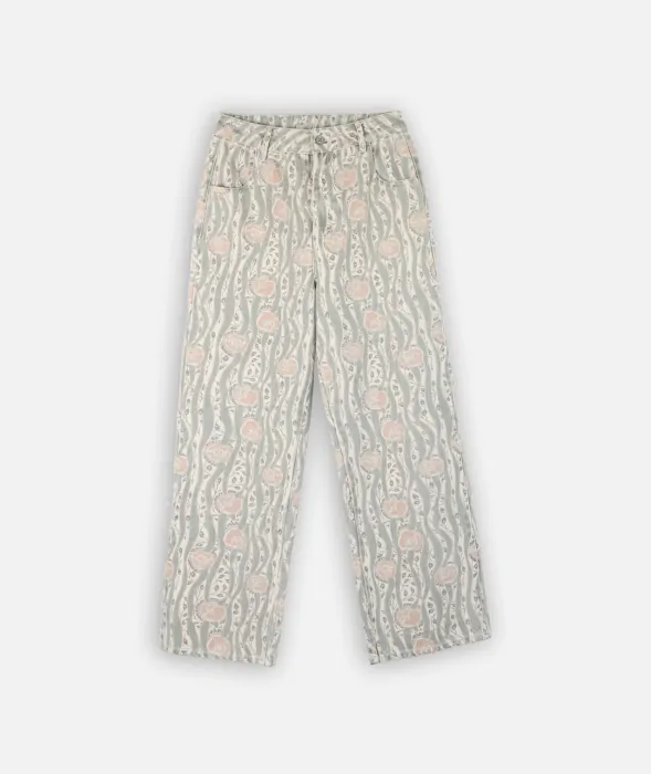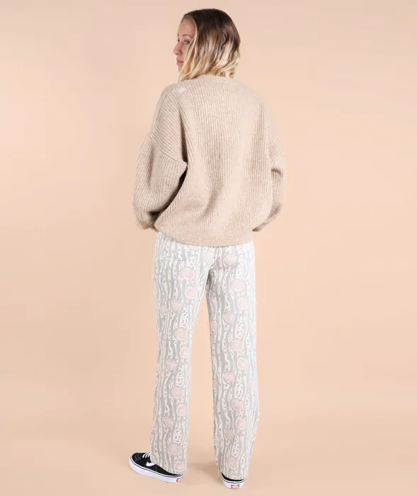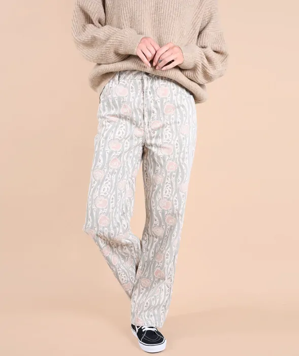 - 5 pocket twill pant, 7/8th wide leg, slightly flared.High waist