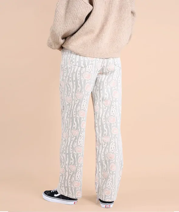 Flared 7/8th twill cotton pants, high-waisted with contrasting woven label at the front.