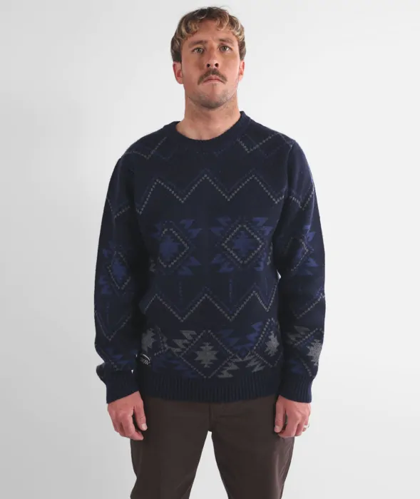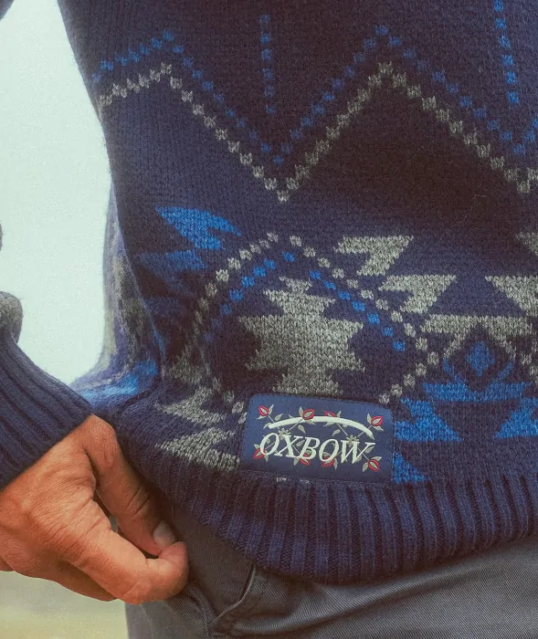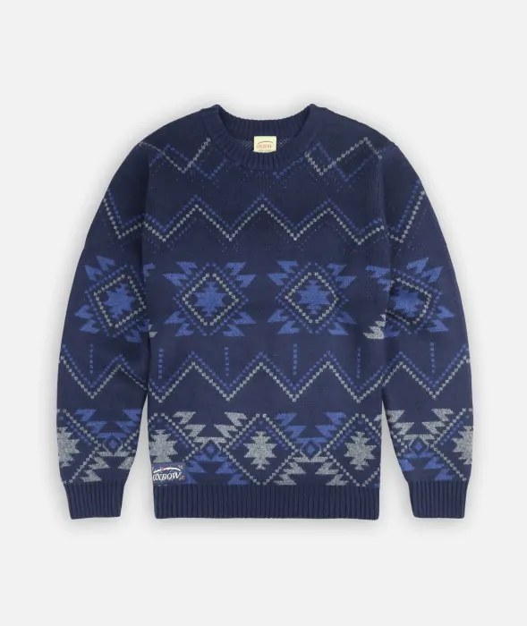 Crew neck jacquard sweater, in acrylic, nylon, and wool blend, for a modern and comfortable fit.