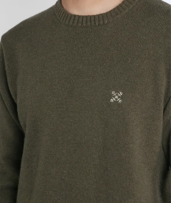 Crew neck sweater in cotton, nylon, and wool blend with 4flo chest embroidery.