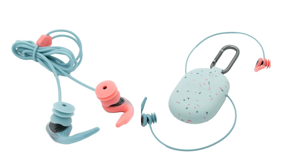 - 1 pair of SurfEars earplugs, pre-mounted with size L wings and M gels, and a detachable leash.