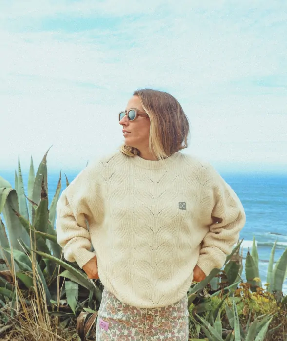 Loose fit sweater with openwork pattern and Oxbow label, perfect for a casual look.